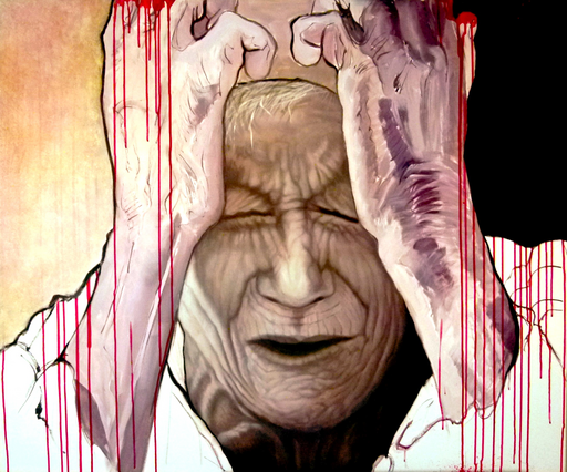 Portraits in commissian and besides that, portraits of women and children, victims of violance.