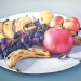 60 x 80 cm, © 2014, verkochtTweedimensionaal | Schilderkunst | Olieverf | Op doek Stilleven van appels in witte kom, met vlinder.